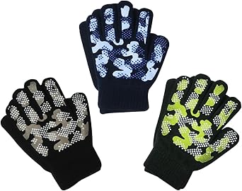 Kids Winter Gloves, 3Pairs Knit Warm Stretch Gripper Children Glove for Boys Girls 4-14 Years