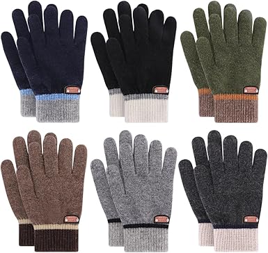 6 Pairs of Kids Gloves Boys Winter Gloves Stretchy Full Fingers Knitted Gloves Wool Fleece Lined Mittens