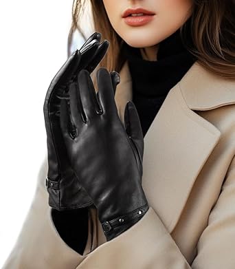 Black Winter Gloves for Women Touchscreen Warm Driving Lambskin Gloves Wool
