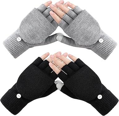 Winter Fingerless Gloves for Women, 2 Pairs Convertible Half Finger Womens Winter Gloves Mittens, Thick Warm Gloves